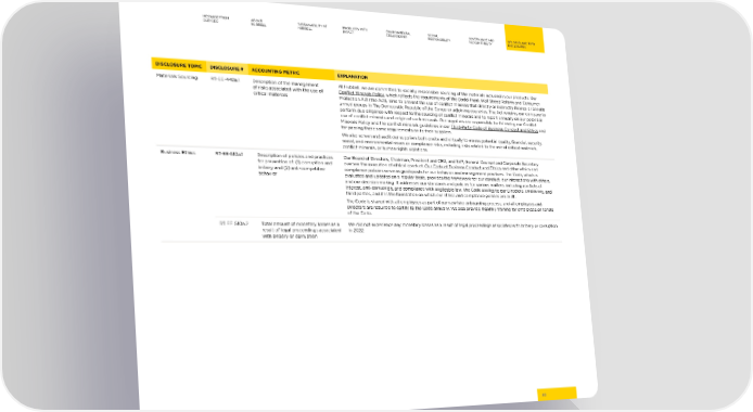 MESSAGE FROM ABOUT SUSTAINABILITY AT PRODUCTS WITH ENVIRONMENTAL SOCIAL GOVERNANCE AND GRI, SASB, AND TCFD OUR CEO HUBBELL HUBBELL IMPACT STEWARDSHIP RESPONSIBILITY ACCOUNTABILITY DISCLOSURES DISCLOSURE TOPIC DISCLOSURE # ACCOUNTING METRIC EXPLANATION Materials Sourcing RT-EE-440a.1 Description of the management At Hubbell, we are committed to socially responsible sourcing of the materials included in our products. Our of risks associated with the use of Con昀氀ict Minerals Policy, which re昀氀ects the requirements of the Dodd-Frank Wall Street Reform and Consumer critical materials Protection Act (the Act), aims to prevent the use of con昀氀ict minerals that directly or indirectly 昀椀nance or bene昀椀t armed groups in The Democratic Republic of the Congo or adjoining countries. The Act requires our company to perform due diligence with respect to the sourcing of con昀氀ict minerals and to report annually on our potential use of con昀氀ict minerals and origin of such minerals. Our suppliers are responsible for following our Con昀氀ict Minerals Policy and the con昀氀ict minerals guidelines in our Third-Party Code of Business Conduct and Ethics and for passing these same requirements on to their suppliers. We also screen and audit our suppliers both onsite and virtually to assess potential quality, 昀椀nancial, security, social, and environmental issues or compliance risks, including risks related to the use of critical materials, con昀氀ict minerals, or human rights violations. Business Ethics RT-EE-510a.1 Description of policies and practices Our Board of Directors, Chairman, President and CEO, and SVP, General Counsel and Corporate Secretary for prevention of: (1) corruption and oversee the execution of ethical conduct. Our Code of Business Conduct and Ethics and other ethics and bribery and (2) anti-competitive compliance policies serve as guideposts for our behavior and management practices. The Code, which is behavior evaluated and updated on a regular basis, provides the framework for our conduct, our interactions with others, and our decision-making. It addresses our standards and policies for various matters, including con昀氀icts of interest, anti-corruption, and compliance with applicable law. The Code applies to our Directors, employees, and third parties, and it is the foundation on which our ethics and compliance policies are built. The Code is shared with all employees as part of our new hire onboarding process, and all employees and Directors are required to certify to the Code annually. We also provide monthly training for employees on tenets of the Code. RT-EE-510a.2 Total amount of monetary losses as a We did not experience any monetary losses as a result of legal proceedings associated with bribery or corruption result of legal proceedings associated in 2022. with bribery or corruption 80