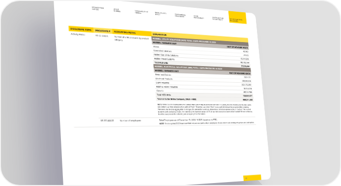 MESSAGE FROM ABOUT SUSTAINABILITY AT PRODUCTS WITH ENVIRONMENTAL SOCIAL GOVERNANCE AND GRI, SASB, AND TCFD OUR CEO HUBBELL HUBBELL IMPACT STEWARDSHIP RESPONSIBILITY ACCOUNTABILITY DISCLOSURES DISCLOSURE TOPIC DISCLOSURE # ACCOUNTING METRIC EXPLANATION Activity Metric RT-EE-000.A Number of units produced by product HUBBELL UTILITY SOLUTIONS (HUS) TOTAL UNITS PRODUCED IN 2022 category HUBBELL BUSINESS UNIT UNIT OF MEASURE: EACH Aclara 45,863 Connected Initiatives 24,672 Hubbell Gas Utility Solutions 10,344,205 Hubbell Power Systems 160,763,744 Total HUS Units 171,178,484 HUBBELL ELECTRICAL SOLUTIONS (HES) TOTAL UNITS PRODUCED IN 2022 HUBBELL BUSINESS UNIT UNIT OF MEASURE: EACH Retail and Builder 7,874,717 Electrical Products 348,610,001 Light Industrial 363,570,080 Harsh & Heavy Industrial 8,706,079 Canada 63,104,799 Total HES Units 791,865,677 Total Units for Entire Company (HUS + HES) 963,044,160 NOTE: Note: Due to diverse products Hubbell o昀昀ers, which may be produced and sold in a variety of units including pounds, feet, packs, and cartons, we store all products in units of “Each.” Therefore, we utilize “Each” as our unit of measure for our production summary. Moreover, due to data aggregation challenges, the production summary above does not include products (i.e., in “eaches”) from select business units, including Aclara. The omitted units represent about 5-10% of our total production across all of Hubbell. We are continuing to re昀椀ne our process for collecting and analyzing this information. RT-EE-000.B Number of employees Total Employees as of December 31, 2022: 16,323 (headcount/FTE) NOTE: This is a global 2022 headcount that includes our joint venture employees. It does not include contingent workers and contractors. 81